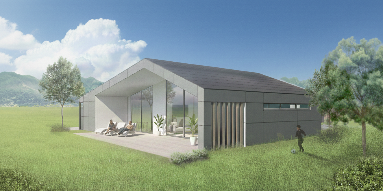 Wohnen auf einer Ebene mit Satteldach